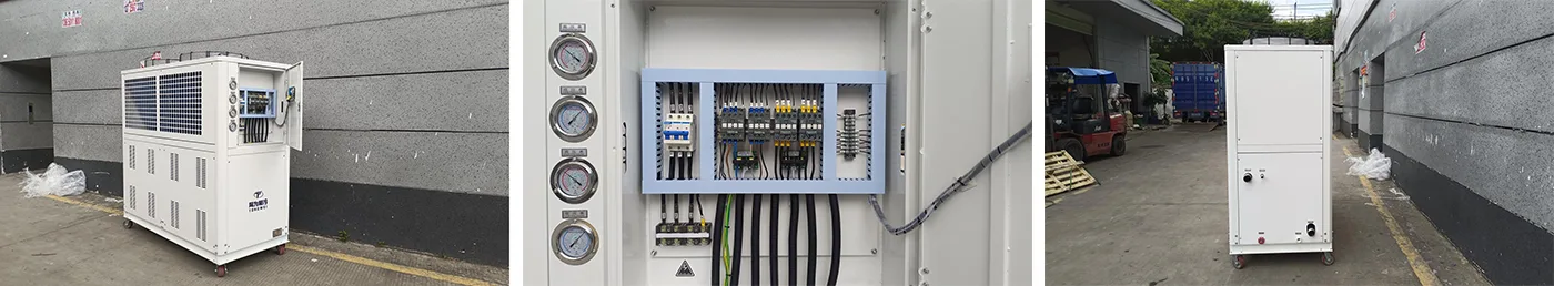 Personalize a tensão e a fase do chiller de acordo com suas necessidades. Opcional 220V/60HZ, 380V/50HZ, 400-415V/50HZ, 460V/60HZ, 440V~480V/60HZ, etc. para diferentes países.